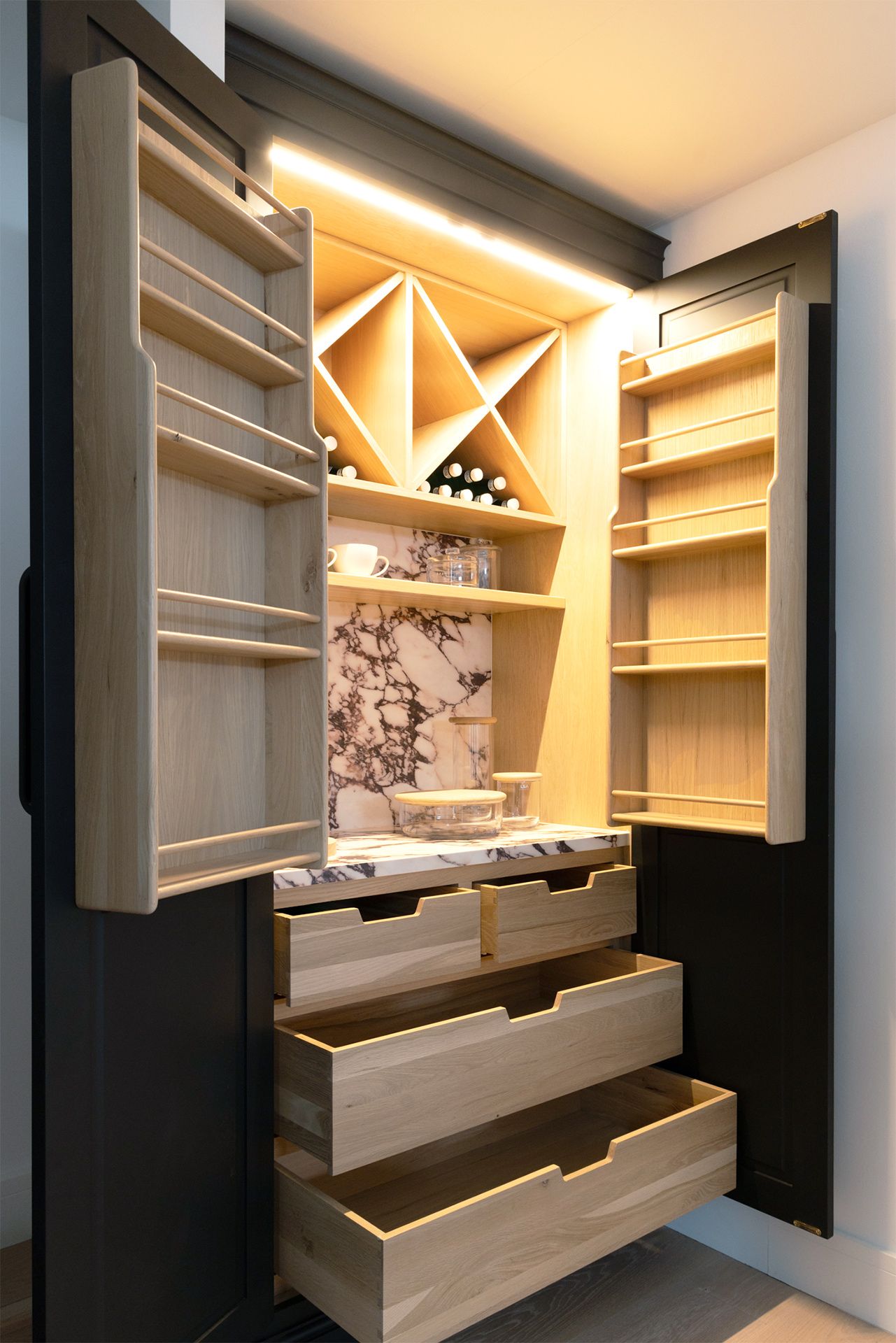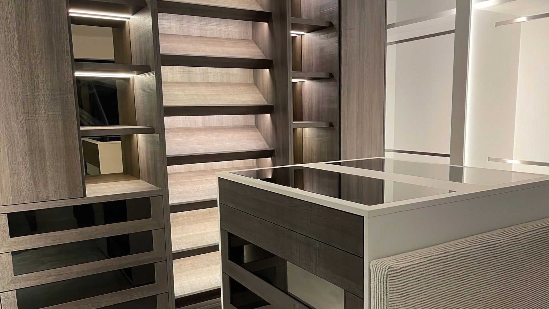 From the overall layout to the finest details, such as central islands that serve as focal points in dressing areas, drawer dividers, and various storage options, the possibilities are endless. Each element is meticulously designed and handmade exclusively for you, ensuring a truly personalised and exceptional bedroom experience.